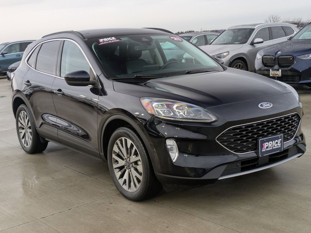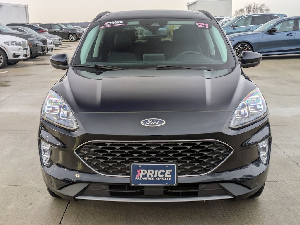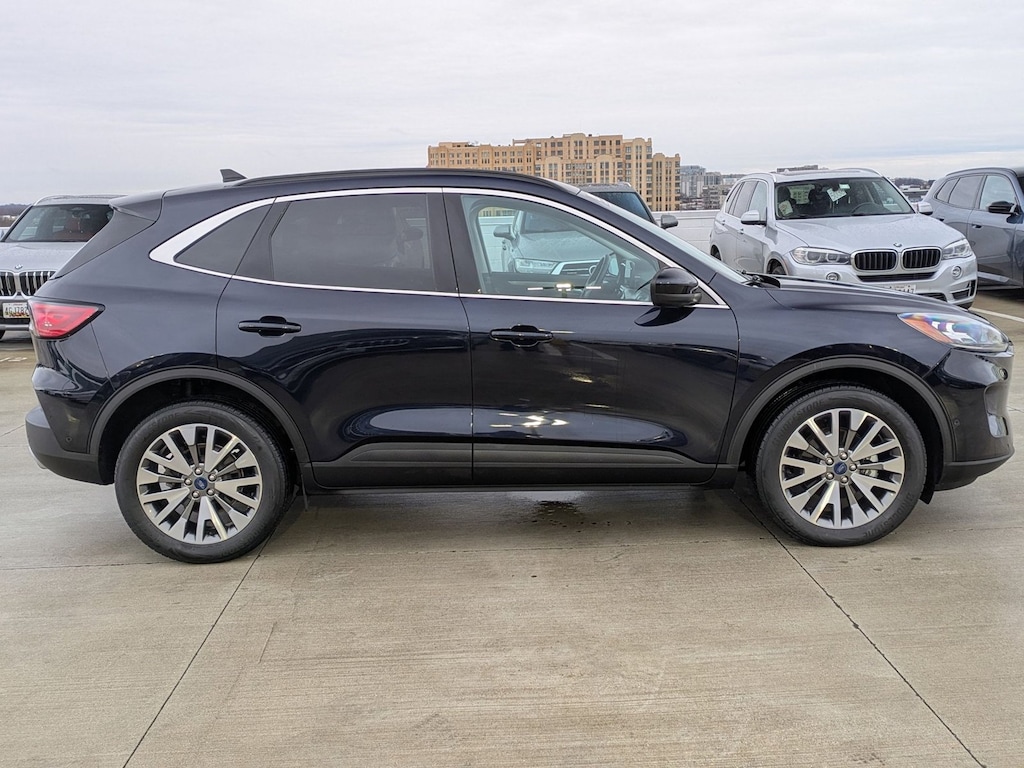You can find this 2021 Ford Escape Titanium and many others like it at AutoNation Chevrolet Timonium. Gone are the days of SUVs being the size of a tank and handling like one. This Ford Escape is a perfect example of how SUVs have evolved into vehicles that are as refined as they are rugged. The Ford Escape Titanium speaks volumes about it's driver, uncompromising individuality, passion for driving, and standards far above the ordinary. It's exceptional fuel-efficiency is a clear sign that not all vehicles are created with the same standards. No matter the weather conditions or terrain, this Antimatter Blue Metallic AWD Ford Escape Titanium handles with an elegant confidence. Fine interior appointments complement this vehicle's unprecedented performance. The incredibly low mileage and painstaking upkeep on this Ford Escape makes it a once-in-a-lifetime deal that won't last long! Call us today to reserve your test drive! The Ford Escape Titanium has a navigation system installed, so you'll always know where you're going. This top-tier navigation system is reliable and will get you to your destination quickly and by the most efficient route available. Although this 2021 Ford Escape Titanium is technically a pre-owned vehicle, the clean and spotless interior could fool even the toughest critic. When all factors are equal, choose a vehicle equipped with a factory warranty like this gently driven gem. The Ford Escape Titanium is in a class on its own. So much so, that Ford didn't miss a beat when they loaded this vehicle with an abundance of a-la-carte options. Intricately stitched leather and ergonomic design seats are among the details in which test drivers say that Ford Escape Titanium is in a league of its own The Ford Escape Titanium is exactly what you would expect out of a Ford. It's decadently opulent, meticulously engineered and unapologetically grandiose. The standard wheels have been upgraded to gives this vehicle a whole new style.